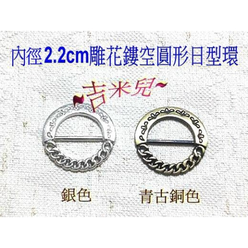 商品:內徑2.2cm雕花鏤空圓形日型環----價格:1個=20元 ***顏色:拋青古銅色.銀色---2色可選**** 尺寸:外徑3.5cm&內徑2.2cm (適穿織帶寬:1.9cm~2.2cm) 材質:鋅合金 ~台灣製~ ***做日環功能調節背帶長,或包包蓋片.身片裝飾創作***