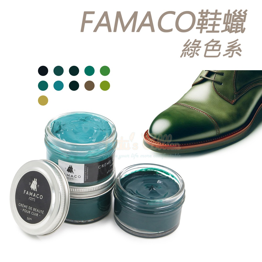 糊塗鞋匠 優質鞋材 L120 GR 法國FAMACO鞋蠟50ml 1罐 【綠色系】 補色上光 補色鞋蠟 上光鞋蠟 增豔補