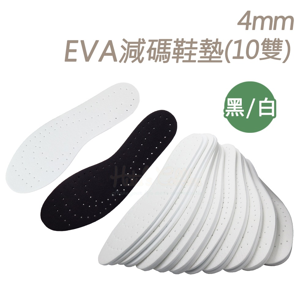 S01 台灣製造 4mmEVA減碼鞋墊10雙 1組 單位:10雙/組 大包裝10雙1組黑白兩色,分男女款, 約可減碼半號,鞋店鞋墊減碼贈品, 上層透氣網布,下層EVA,沖孔透氣設計 4mm EVA減碼鞋墊特色: 1.減碼鞋墊:約可減碼鞋內大半號,放入鞋號太大的鞋子內即可減少半碼 2.質量輕:EVA質地輕軟 3.透氣孔:沖孔設計,透氣不悶熱 4.下層EVA,EVA墊底更柔軟,輕量、緩衝 上層環保坎培拉材質,透氣網布,舒適、吸汗 EVA發泡,約使用3-6個月,使用久會扁掉,屬於消耗品 5.可剪裁:自由剪裁更便利,剪裁時對照平常穿著的舊鞋墊剪裁較精準 商品單位:10雙 材質:EVA、環保坎培拉 厚度:3mm 尺寸: 男黑色、男白色:長28.5cm 前掌寬9.5cm 後跟寬6.5cm 重量(雙)18g 女黑色、女白色:長25.5cm 前掌寬8cm 後跟寬5.5cm 重量(雙)12g 尺寸皆為手工測量,略有誤差,誤差約±5mm 適用範圍: 適用於多種類型鞋子 娃娃鞋/休閒鞋/皮鞋/平底鞋/球鞋..等 使用方法: 將減碼鞋墊放入原本鞋墊上即可