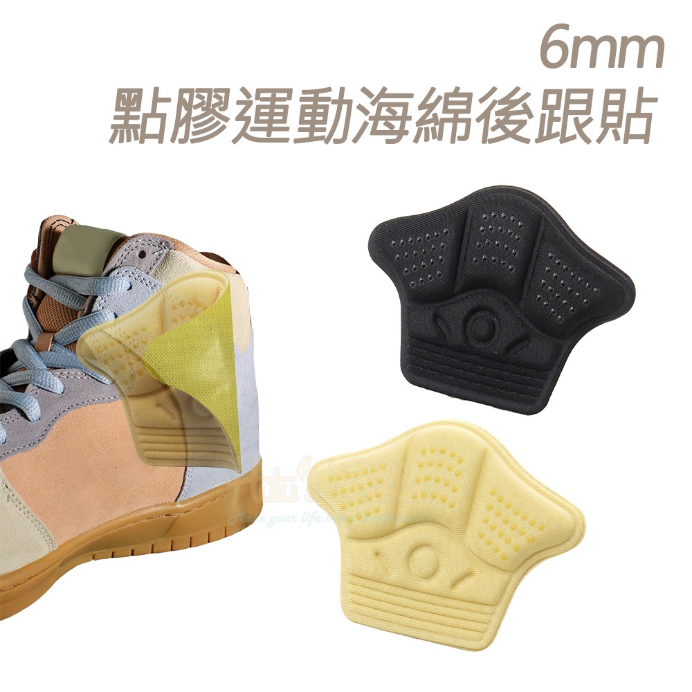 6mm點膠運動海綿後跟貼特色: 材質:海綿、針織泳布、矽膠、雙面膠 賣場還有同款10mm