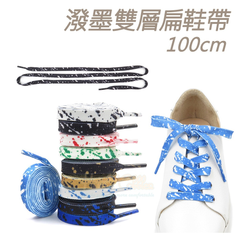 潑墨雙層扁鞋帶特色: 10色可選,通通收集起來 ! 雙層編織,厚實耐用 材質:聚酯纖維 賣場還有不同長度鞋帶可選購:
