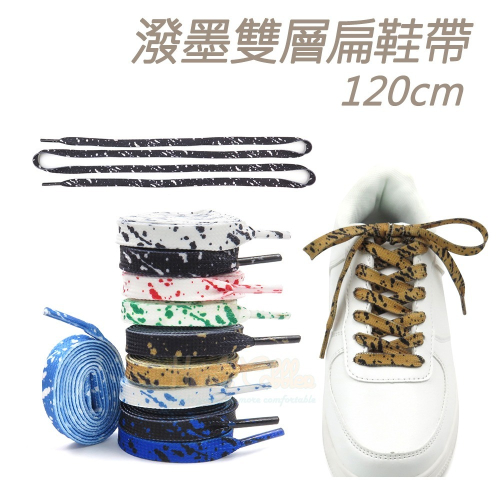 潑墨雙層扁鞋帶特色: 10色可選,通通收集起來 ! 雙層編織,厚實耐用 材質:聚酯纖維 賣場還有不同長度鞋帶可選購: