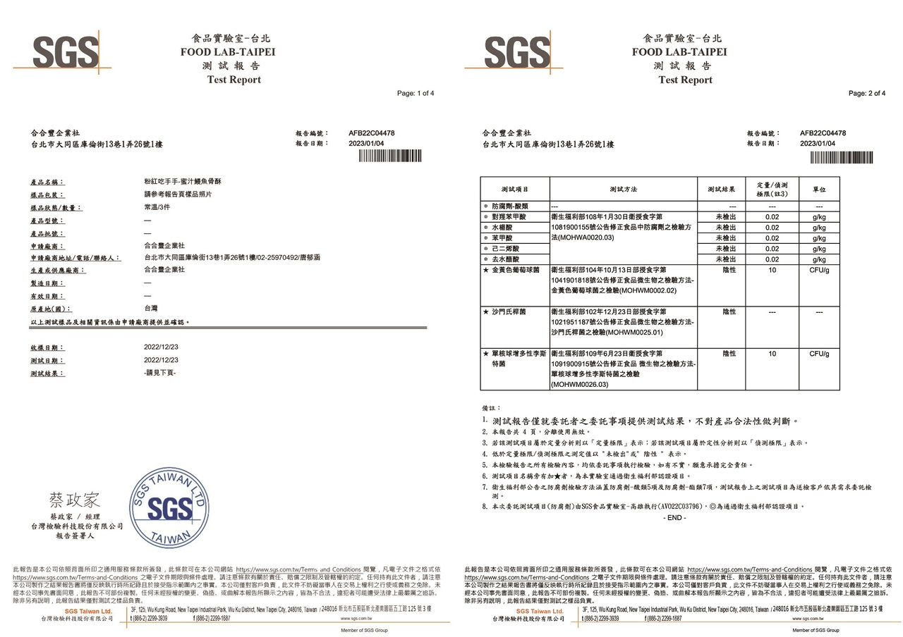 註:本商品經(SGS)台灣檢驗科技股份有限公司檢驗,防腐劑-(酸類)、微生物結果都未檢出(如報告),敬請各位消費者安心使用。