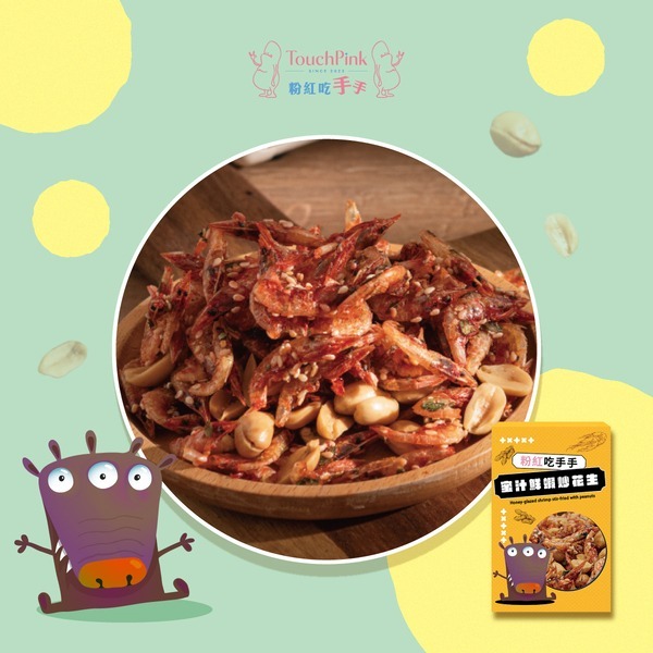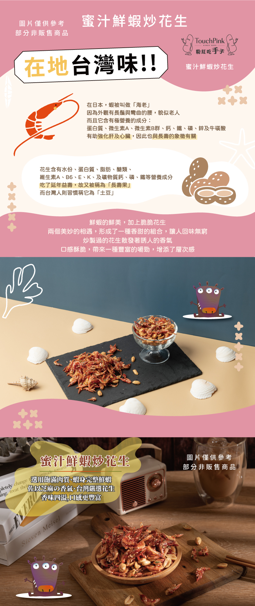 品名:粉紅吃手手-蜜汁鮮蝦炒花生