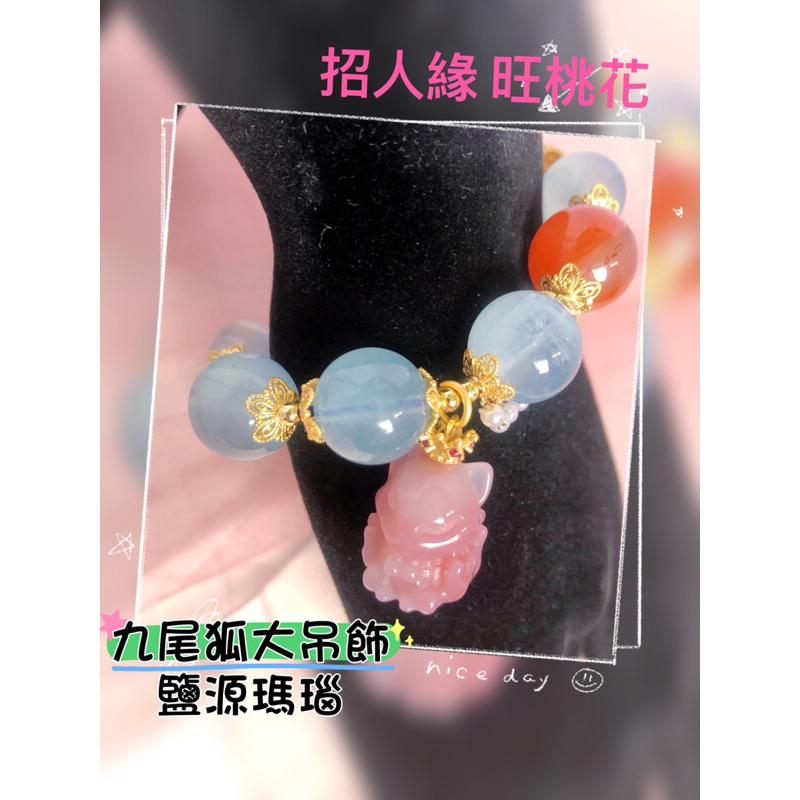 獨家設計👑款大咪數海藍寶鹽源瑪瑙九尾狐天然水晶瑪瑙招財旺桃花