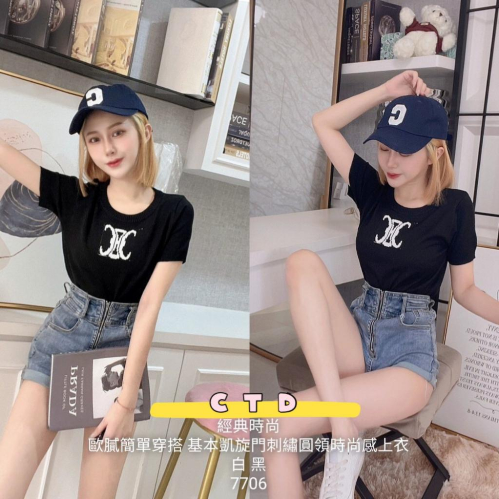 「預購」🔍7706 歐膩簡單穿搭 基本凱旋門刺繡圓領時尚感上衣