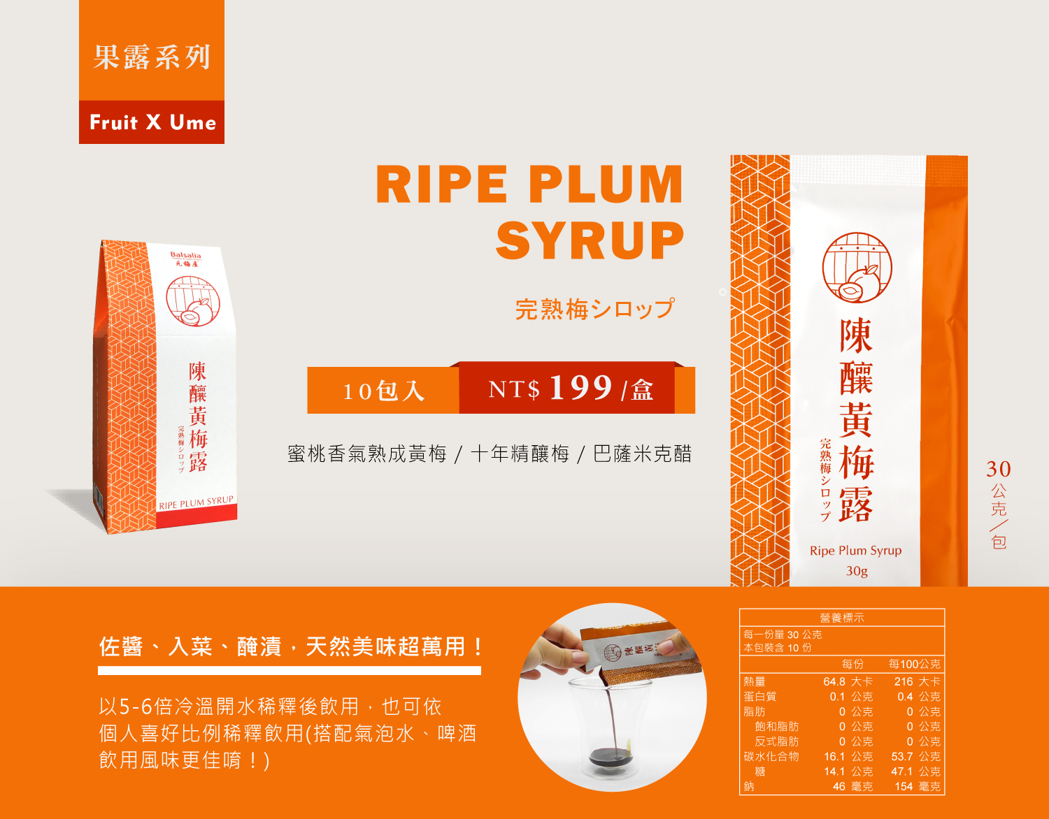 成分:黃梅、紅糖、陳年釀漬梅(梅子、蔗糖、海鹽)、陳年巴薩米克醋