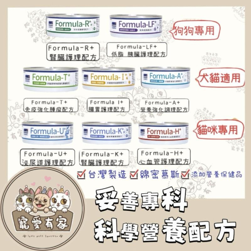 ❣️產品特色: 讓您方便備餐、保存便利,且易餵食、高適口性,還有高含肉量和高含水性等特點! 比起市場上他牌罐頭或您自煮的鮮食可能有缺乏多種必需營養素等問題,妥膳配方罐能更精準的補足疾病寵物所需的營養。 ♥️產品介紹: Formula-T+ 犬貓免疫強化腫瘤配方 85g Formula I+ 犬貓腸胃護理配方 85g Formula-A+ 犬貓營養強化調理配方 85g Formula-R+ 犬用腎臟護理配方 80g Formula-LF+ 犬用低脂(胰臟護理)配方 80g Formula-U+ 貓咪泌尿道護理配方 80g Formula-K+ 貓咪腎臟護理配方 85g Formula-H+ 貓咪專用心血管護理配方 https://s-cf-tw.shopeesz.com/file/tw-11134208-7rbke-maskgyz4p8xid7 https://s-cf-tw.shopeesz.com/file/tw-11134208-7rbk3-maskgyz4qnhy0e