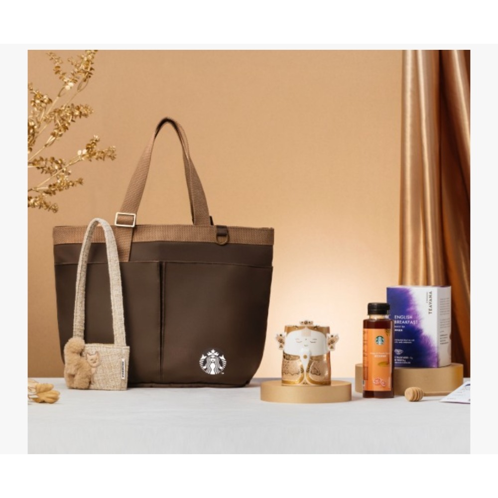 金生保佑新春禮內容物:金色媽袓馬克杯、金貓咪尾巴便利單杯提袋、拼色尼龍可提調節提背袋,蜜柚醬、茶瓦納英式紅茶