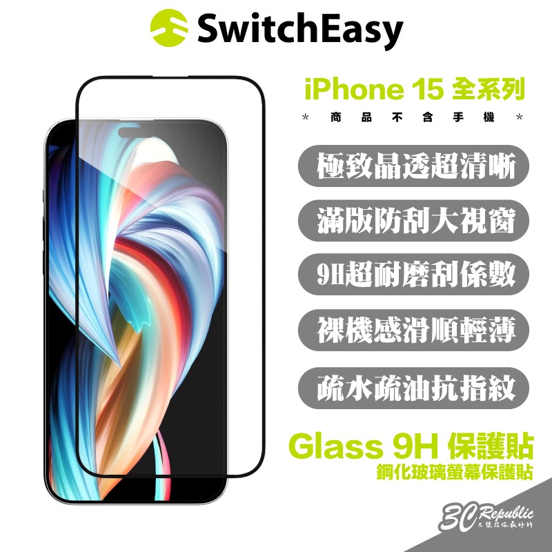 SwitchEasy 魚骨牌 亮面 9H 鋼化玻璃 保護貼 螢幕貼 iPhone 15 Plus Pro Max