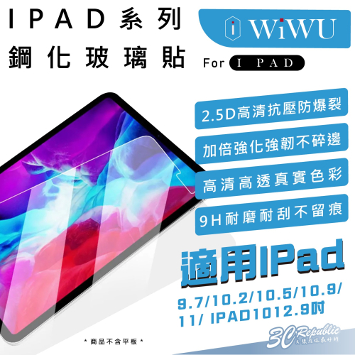 WiWU 鋼化 玻璃貼 9h 保護貼 螢幕貼 適 平板 iPad 9.7 10.2 10.5 10.9 11 12.9
