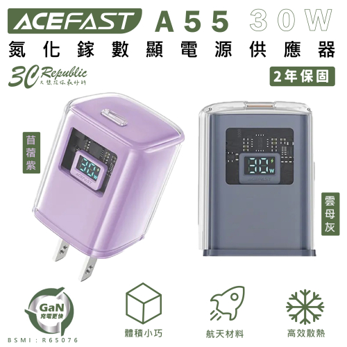 ACEFAST 探索系列 PD30W氮化鎵數顯電源供應器A55