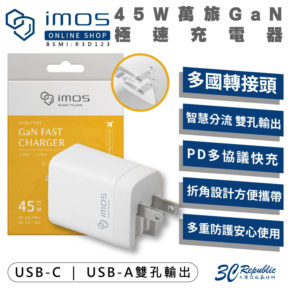 imos 45W 萬旅 GaN 氮化鎵 PD QC 充電器 充電頭 快充頭 適 多國轉接頭 iPhone 15 14