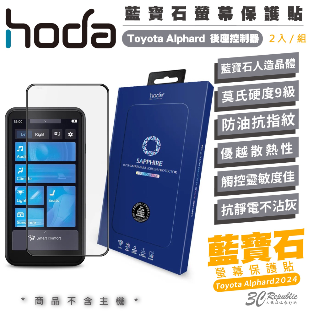 hoda 藍寶石 9H 玻璃貼 螢幕貼 保護貼 2入 適用 Toyota Alphard 後座控制器