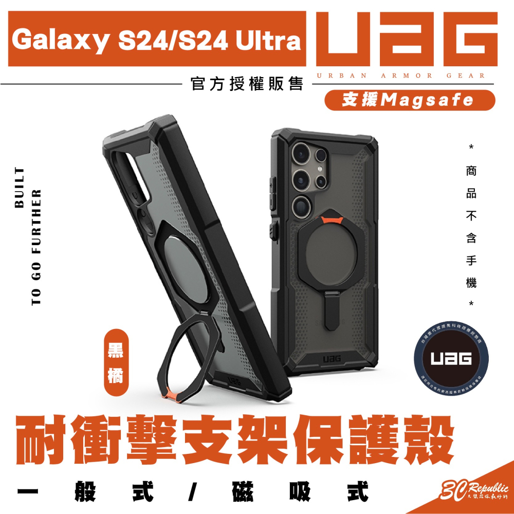 🔷商品名稱:【UAG】Galaxy S24 S24 Ultra(一般磁吸式) 耐衝擊支架保護殼-黑橘 ( MagSafe 手機殼)