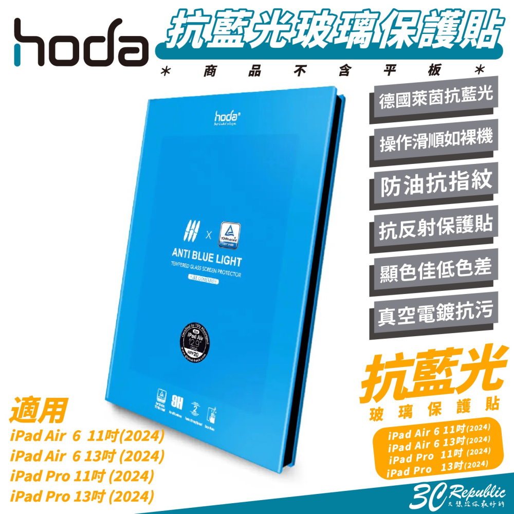 Hoda 9H 德國萊因 抗藍光 玻璃貼 保護貼 螢幕貼 適 iPad Air 6 Pro 11 13 吋 2024