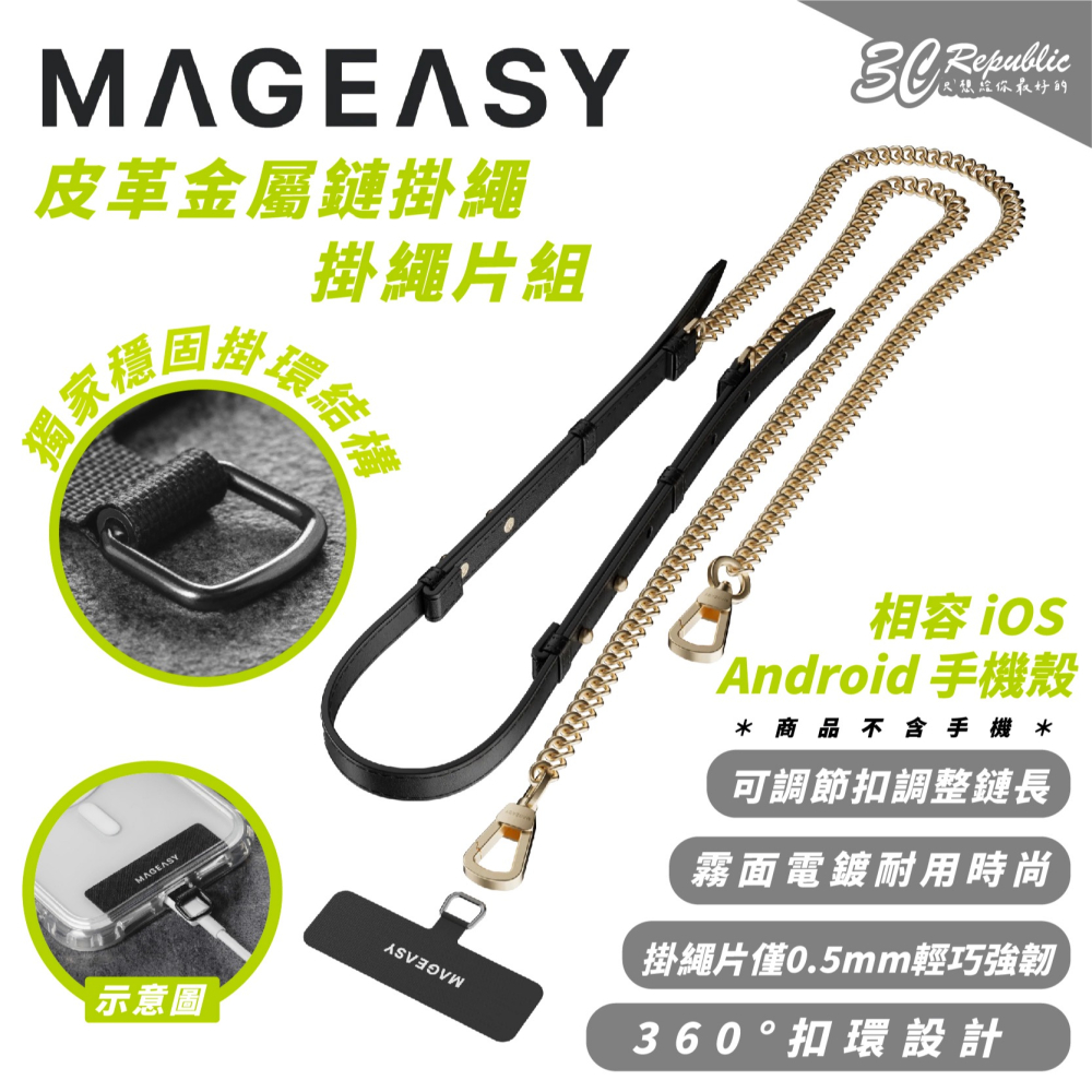 MAGEASY 皮革 金屬 鏈掛繩 手機掛繩 手機揹繩 附 轉接片 連接片 掛繩片 適 iPhone 15 S24