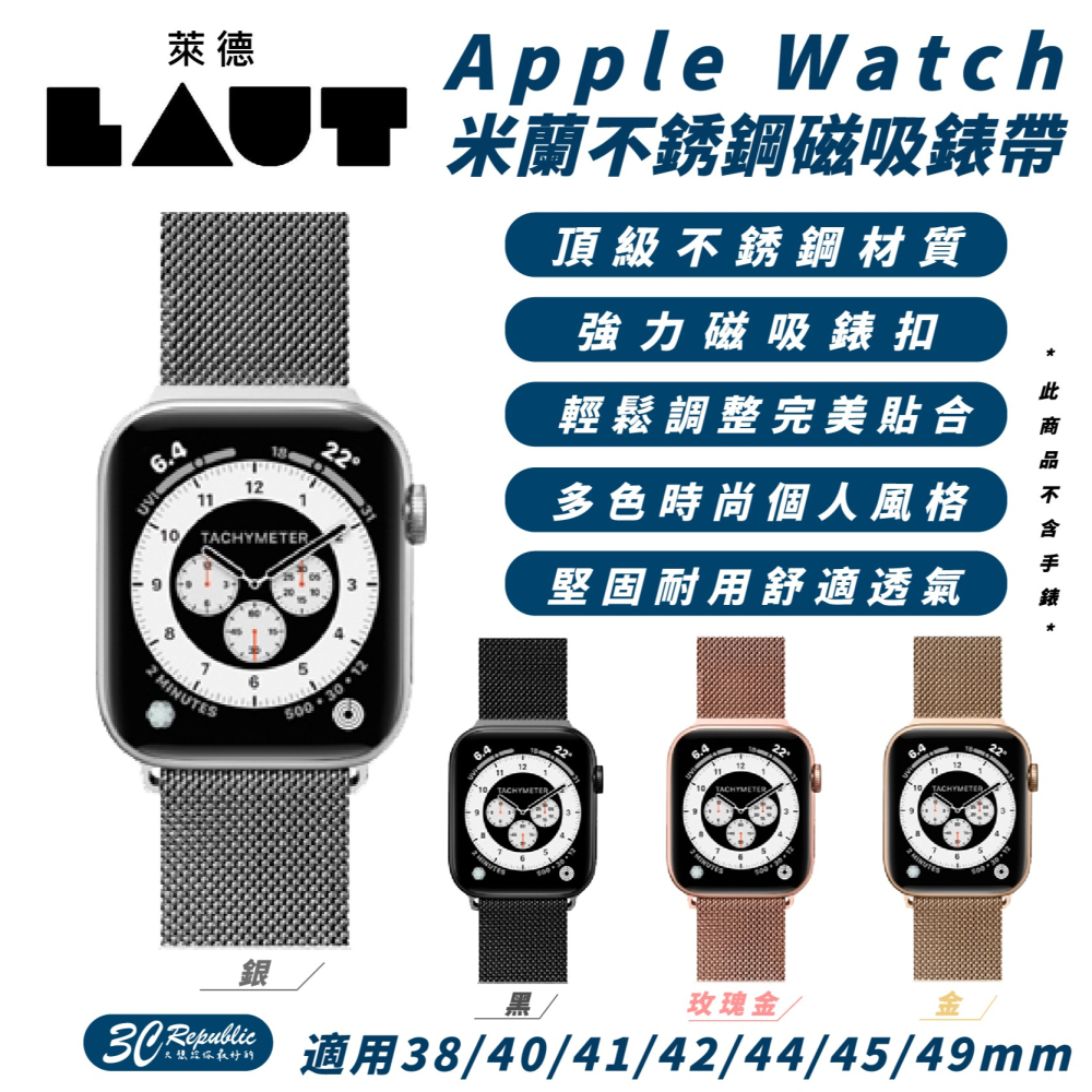LAUT 萊德 米蘭 不銹鋼 磁吸 錶帶 適 Apple Watch 38 40 41 42 44 45 49 mm