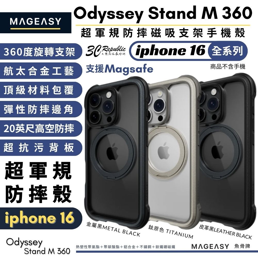 MAGEASY 魚骨牌 Odyssey Stand M 超軍規防摔磁吸支架手機殼(支援MagSafe)iphone 16