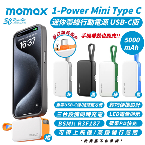 Momax 1-Power Mini 5000mAh Type C 迷你 帶線 行動電源 適 iPhone 16 15