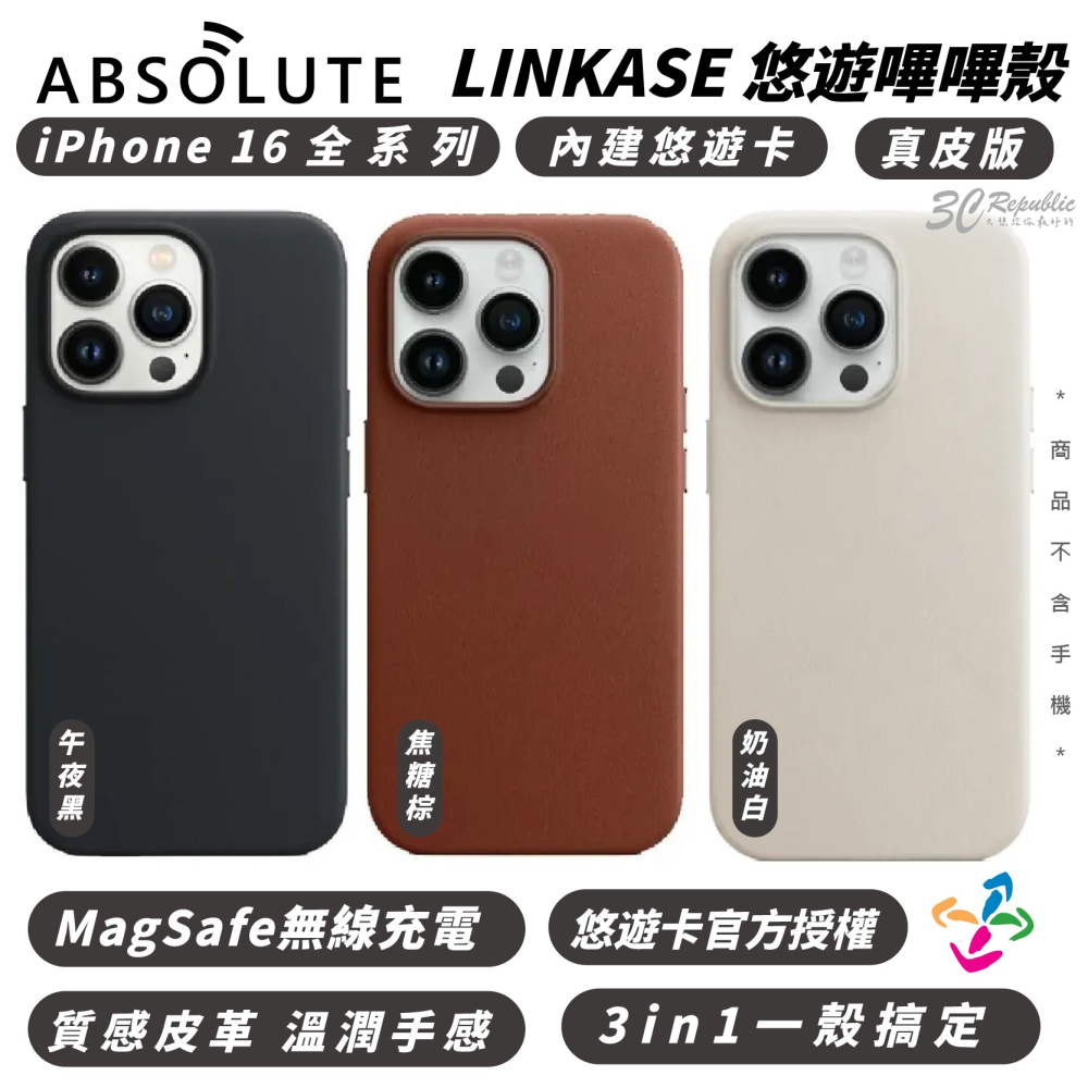 ABSOLUTE LINKASE 嗶嗶殼 真皮版 內建 悠遊卡 手機殼 iPhone 16 Plus Pro Max