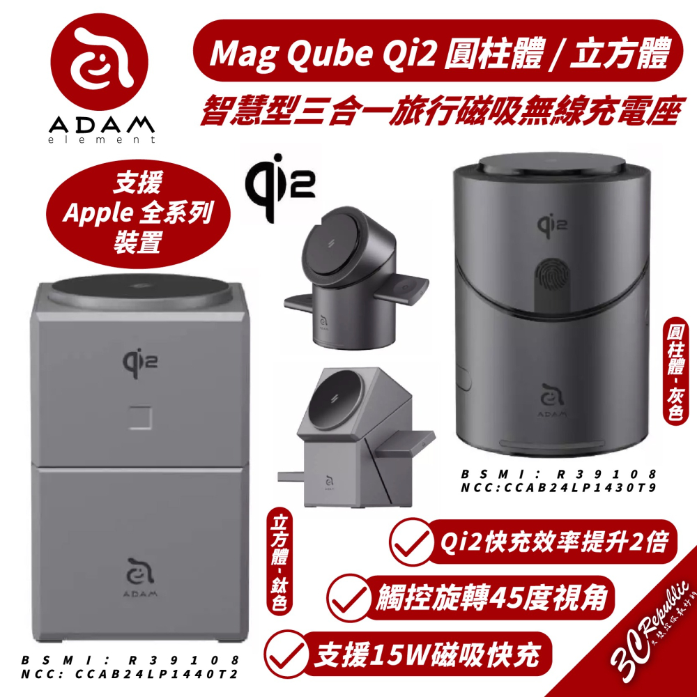 ADAM Mag Tube Qube Qi2 圓柱體 立方體 智慧型 三合一 旅行 磁吸無線充電座 iPhone 16