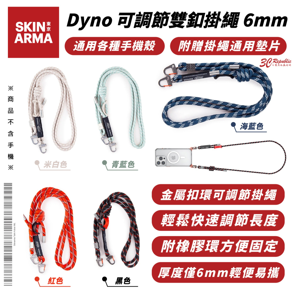 Skinarma Dyno 手機掛繩 手機繩 防摔繩 6mm 附 轉接片 適 iPhone 16 15 14 S24