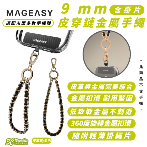 MAGEASY 皮穿鏈金屬手繩 |9mm (含掛片) 手機掛繩 手機短繩