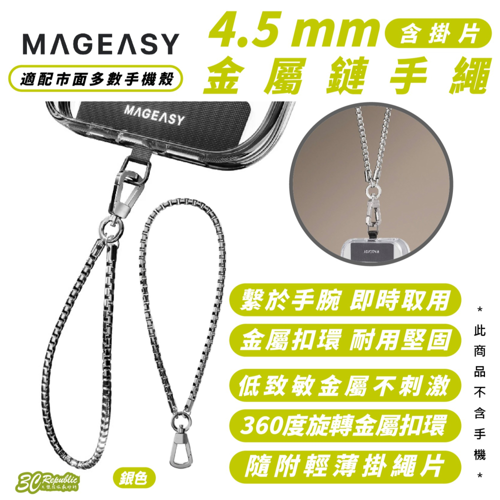 MAGEASY 金屬鏈手繩 4.5 mm 手機 掛繩 短繩 腕繩 防摔繩 適 iPhone 16 15 14 S24