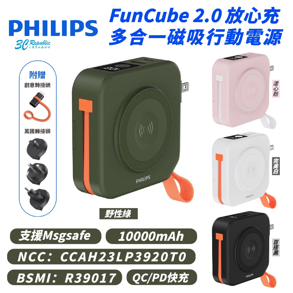 【PHILIPS 飛利浦】 FunCube 2.0 放心充多合一磁吸行動電源Type-C DLP4348