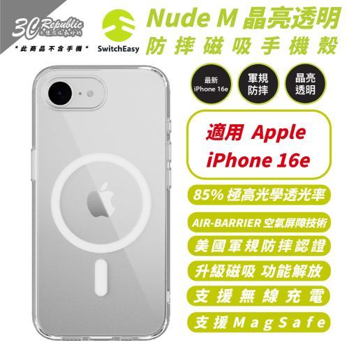 SwitchEasy 魚骨牌 Nude M 磁吸 透明殼 手機殼 防摔殼 支援 MagSafe iphone 16e