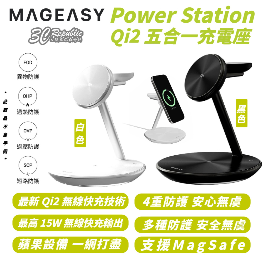 MAGEASY Power Station Qi2 五合一充電座 無線充電手機架 支援MagSafe (三年保固)