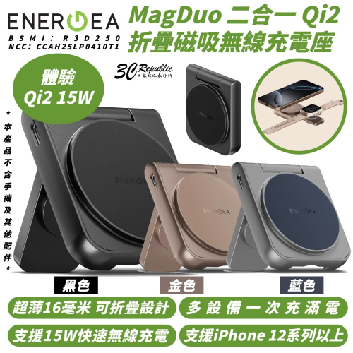 ENERGEA MagDuo 二合一 Qi2 折疊 磁吸 無線 充電座 MagSafe 適 iPhone 16e 16