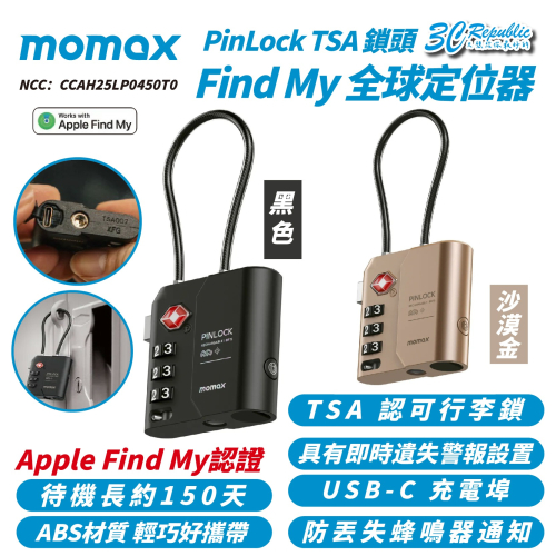 MOMAX PinLock TSA 鎖頭 Find My 非 AirTag 適 iPhone 16e 16 15