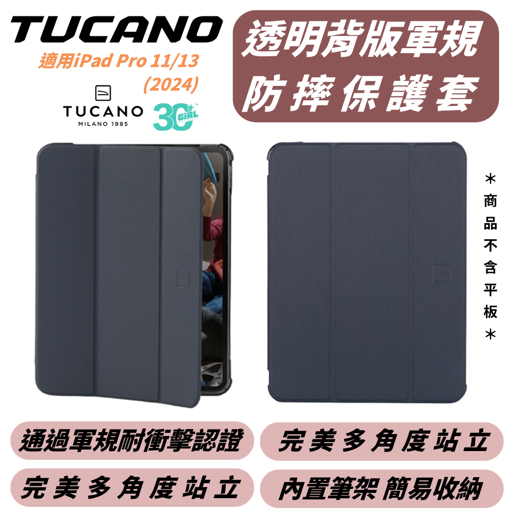 TUCANO iPad Pro 11/13 (2024) 透明背版軍規防摔保護套