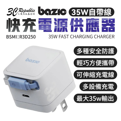 *Bazic Retrek 35W PD自帶線 快充 電源供應器 充電器 充電頭 適 iPhone 17 16 15 s25**
