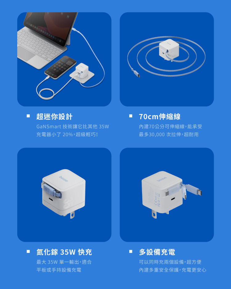 ・採用GaNSmart技術,體積較同級35W充電器縮小20%