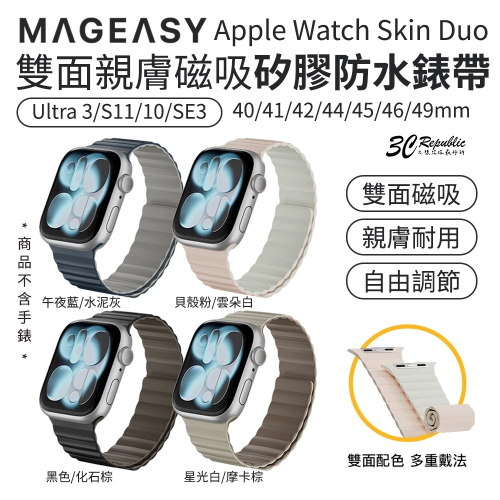 MAGEASY Skin Duo 雙面 親膚 磁吸 矽膠 錶帶 Watch Ultra 2 3 44 45 49 mm
