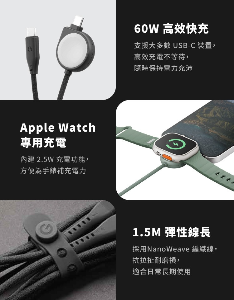 ENERGEA Flow Duo C to C 60W 二合一 手錶 Apple Watch ultra 2 3 充電器 充電線
