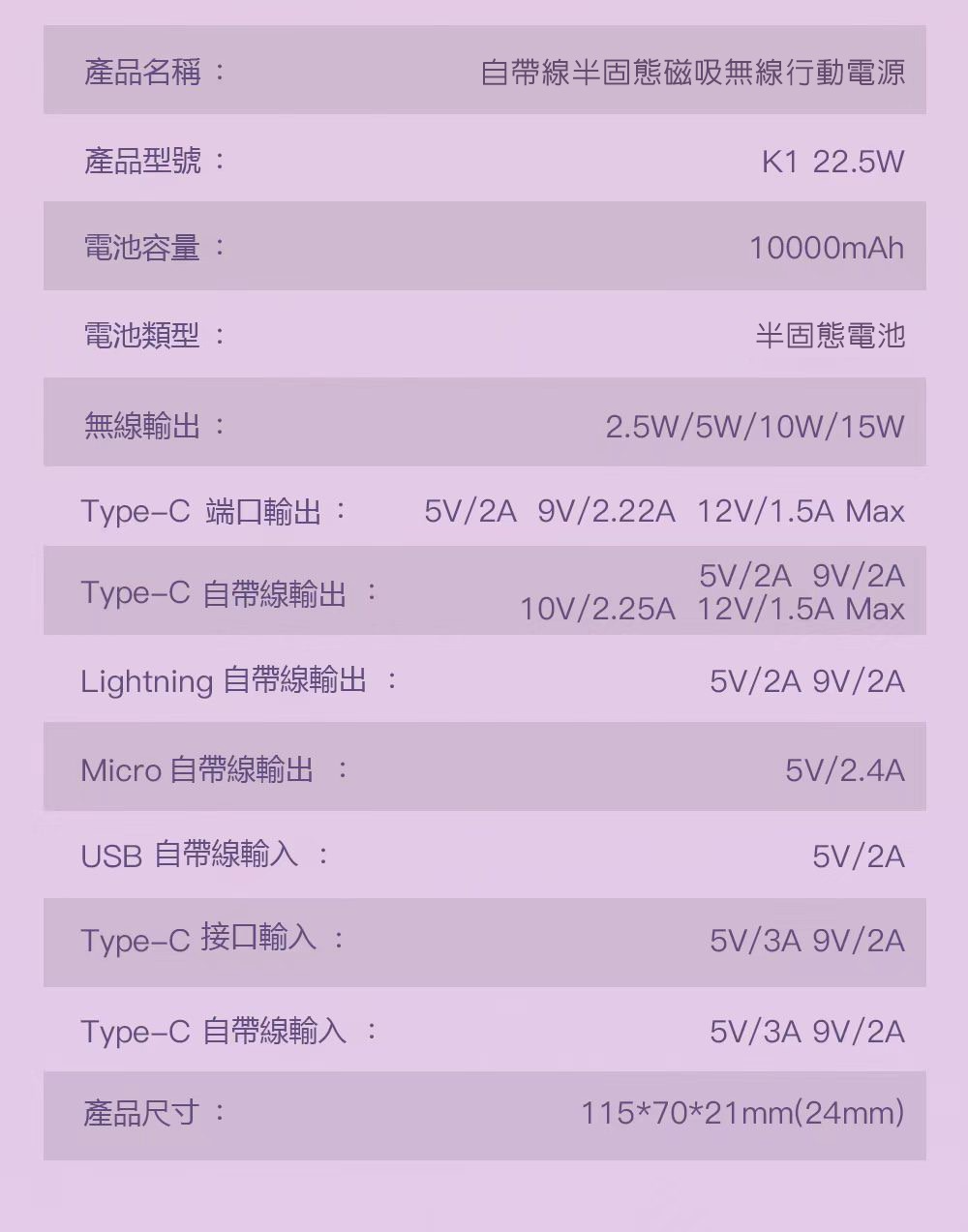 22.5W 超級快充+PD18W 雙向快充+15W無線快充:省時高效,快充回電不等待。