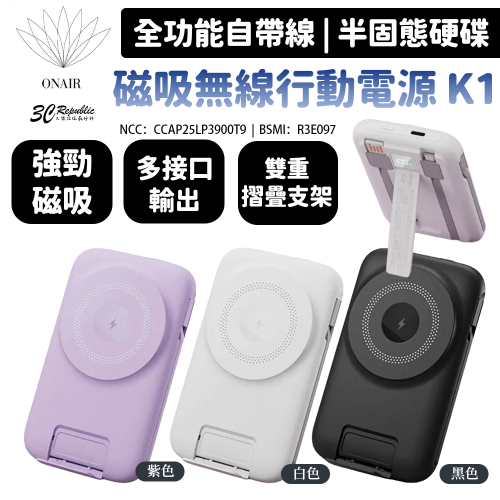 ONAIR 全功能 自帶線 快充 三合一 磁吸 行動電源 K1 半固態 iPhone 17 16