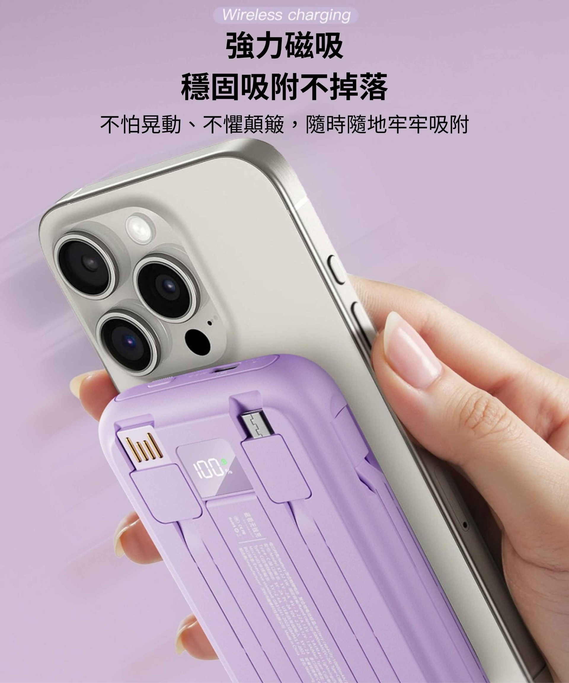 10000mAh 大容量:持久續航,旅行/通勤不斷電。