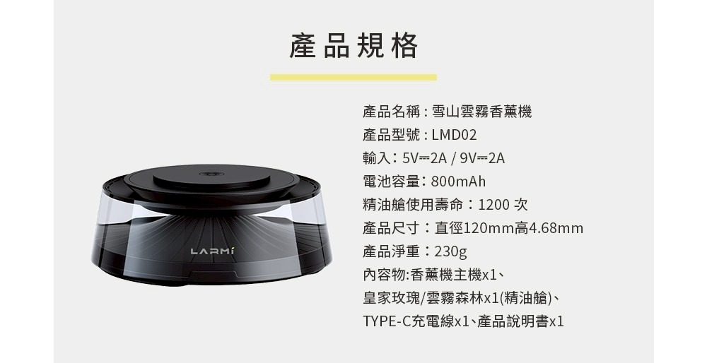 樂米 LARMI 雪山 超音波 冷霧 精油 擴香 雲霧 香薰機 LMD02