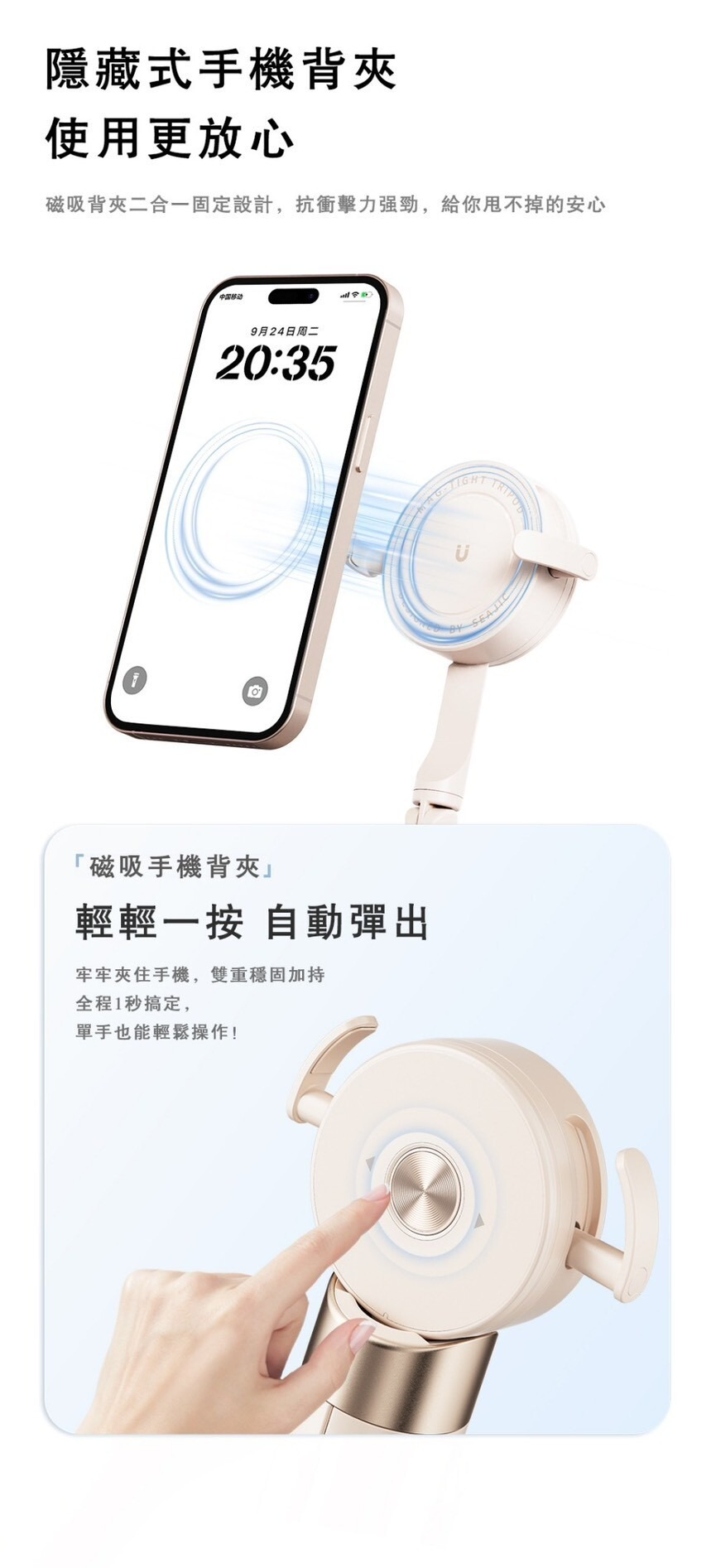 ONAIR 大力神 二代 落地 自開腳架 雙面 磁吸 Magsafe 藍芽 自拍棒 AB230