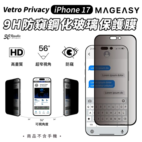 MAGEASY 防窺 9h 鋼化 玻璃 保護膜 保護貼 手機保護貼 iPhone 17 Air Pro Max