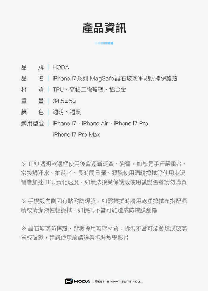HODA MagSafe 晶石 玻璃 軍規 相機按鍵 防摔殼 保護殼 iPhone 17 Pro Max