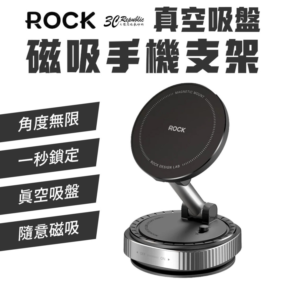 ROCK 真空 吸盤 磁吸 支架 車載 手機支架 QS6 適用 iphone 16 17 15 14 13
