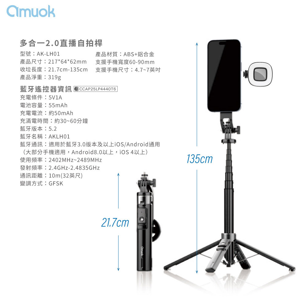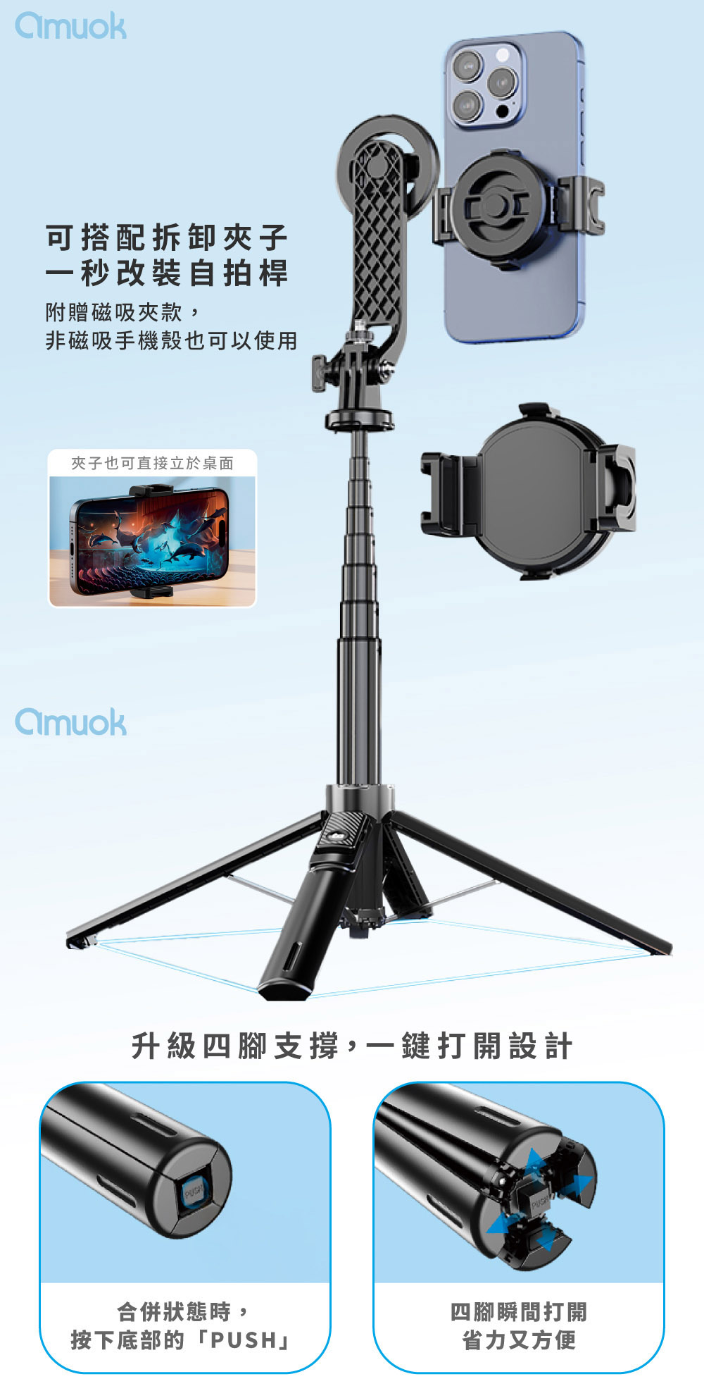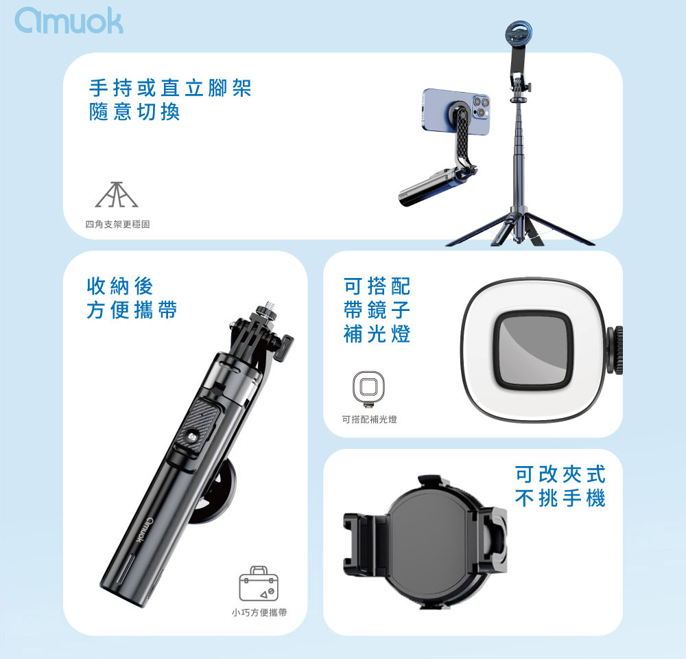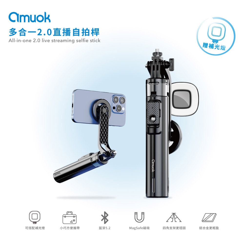 amuok 多合一 2.0 藍牙 MagSafe 磁吸 直播 自拍桿 自拍棒 適用 iphone 17 16 15 14