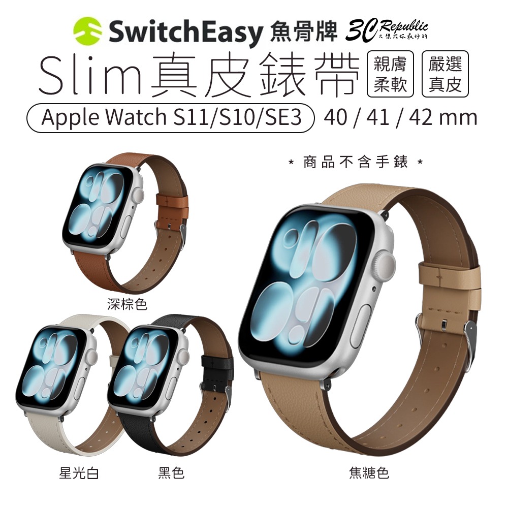 SwitchEasy Slim 真皮 錶帶 Apple Watch S11 S10 SE3 40 41 42 mm