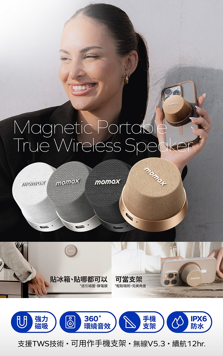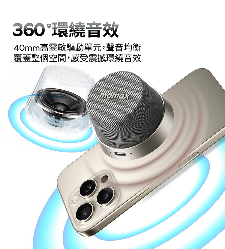 Momax 摩米士 迷你 磁吸 支架 無線 音箱 掛繩 喇叭 1-Vibe Go 適 iPhone 17 16 15